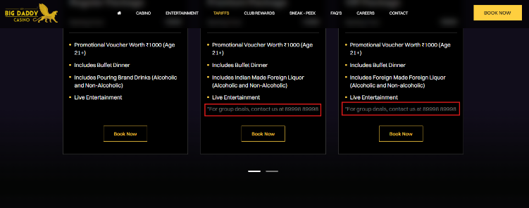 Booking tickets for Big Daddy Casino is simple and convenient. Visitors can reserve their spots directly on the official website, which lists current packages, prices, and offers. For those who prefer personal assistance, a booking helpline is available, and updates are often shared via WhatsApp, especially for group deals or special events.
